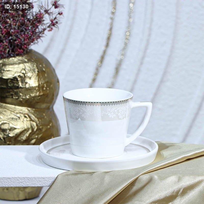 طقم ماغ شاي 6/6 بورسلان لميع ابيض 240CC اطار مرسم بيج YSC16++ع4