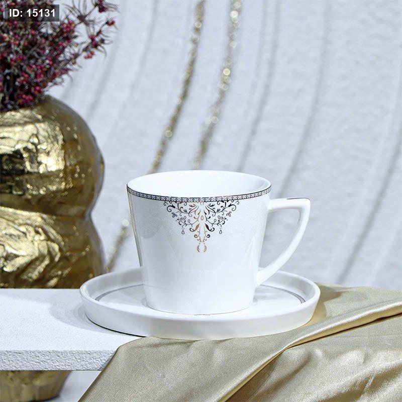 طقم ماغ شاي 6/6 بورسلان لميع ابيض 240CC اطار مرسم فضي YSC13++ع4