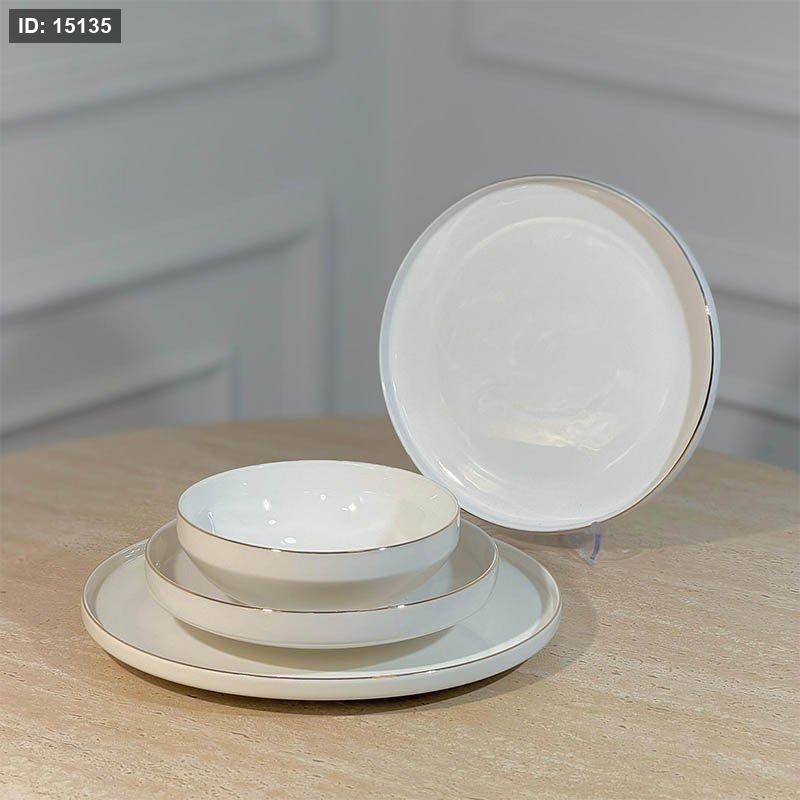 طقم صحون سفرة/24 بورسلان ابيض لميع حيف ذهبي YSC18++ع4