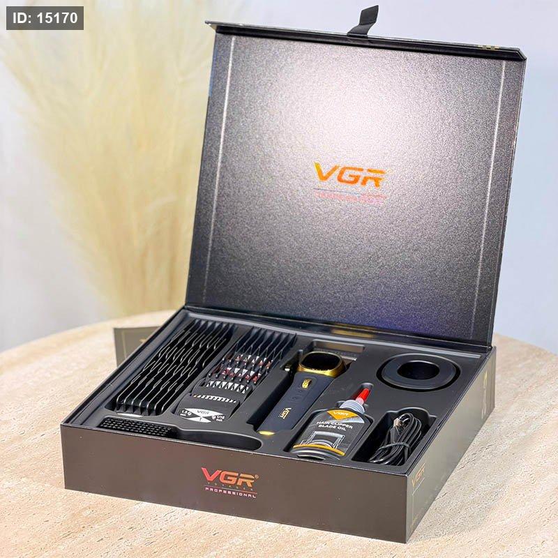 صندوق حلاقة 16قطعة ماكنة حلاقة V-855C-GOLD رقمية + 11 درجة + زيت حلاقة وفرشاة =WW