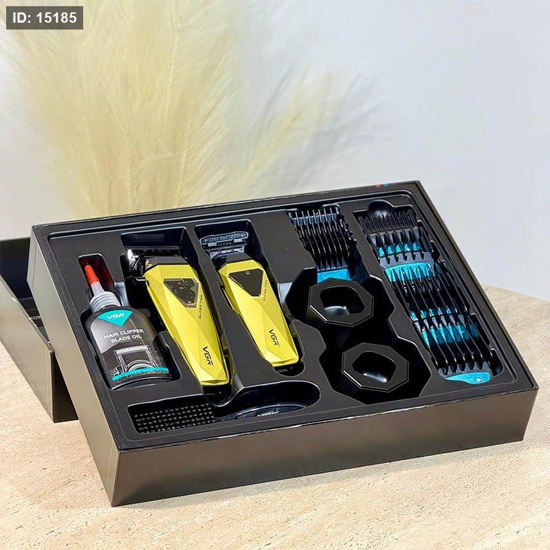 طقم/2 ماكنة حلاقة رقمية + 10 درجات V-877-S2-G مع فرشاة وزيت لون ذهبي =WW