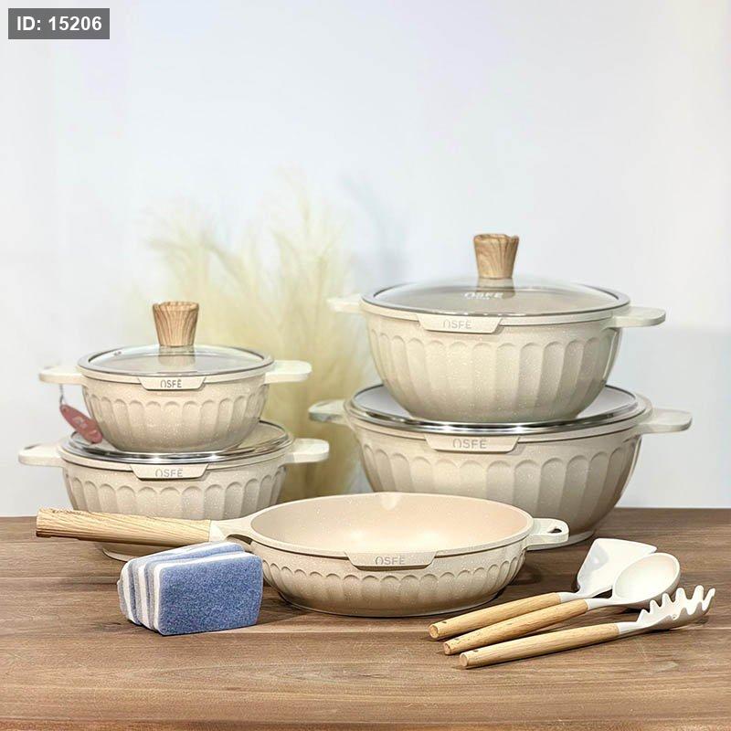 طقم طناجر/15 جرانيت 20/24/28/32 سم+ مقلى28سم+3 كفكيرة و3ليف A7/1 بيج=WW