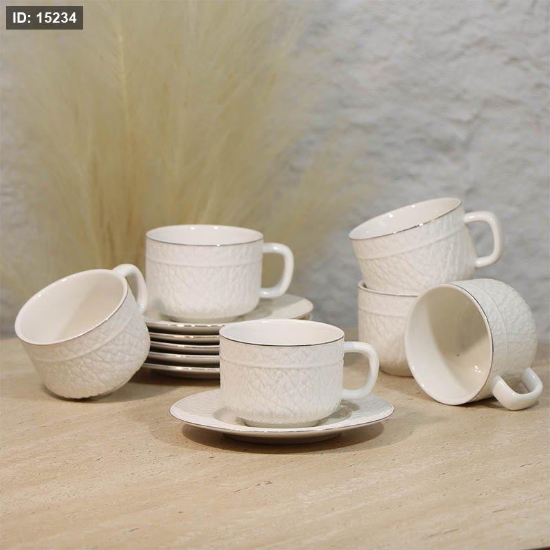 طقم فناجين شاي 6/6 بورسلان ابيض مبزر حيف ذهبي A29/2 =ع4