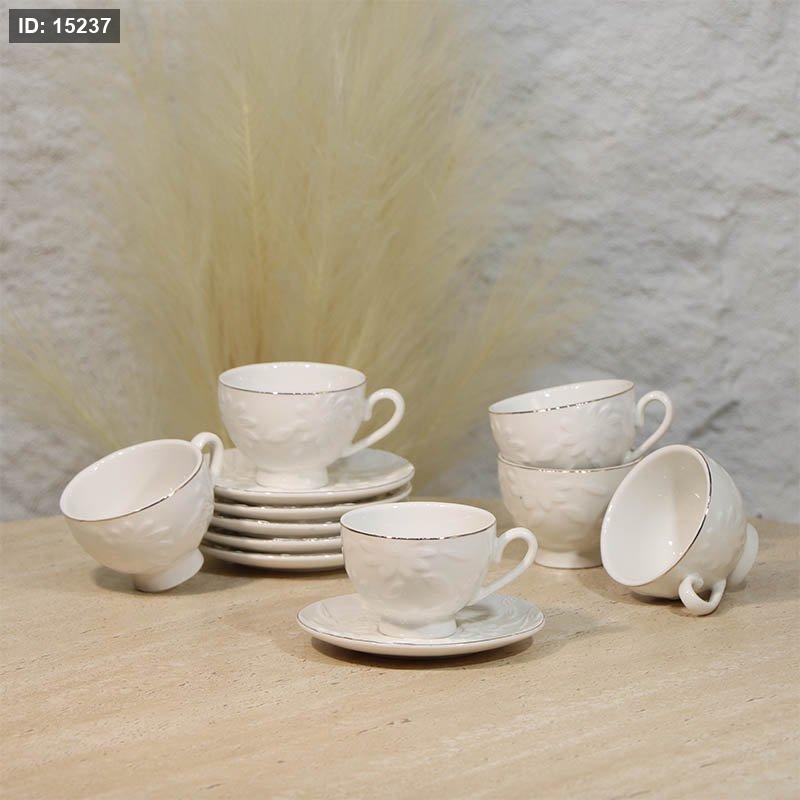 طقم فناجين قهوة 6/6 بورسلان ابيض مورد حيف ذهبي بقاعدة A29/5 =ع4