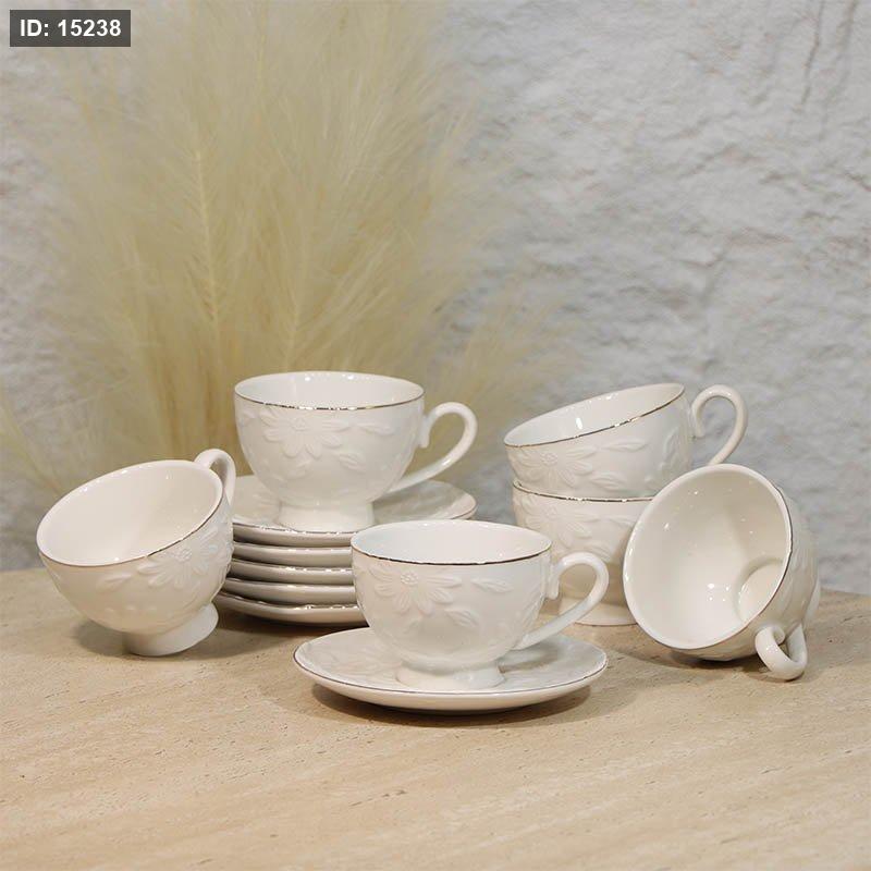 طقم فناجين شاي 6/6 بورسلان ابيض مورد حيف ذهبي A29/6 =ع4