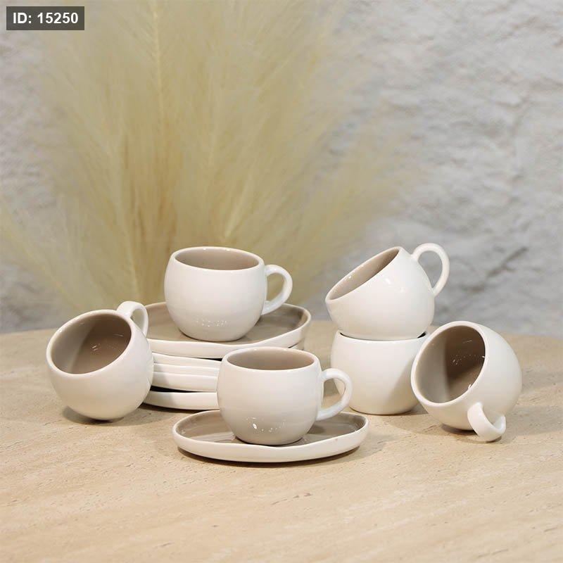 طقم فناجين قهوة 6/6 بورسلان ابيض بستاشيو صحن معلوج A48/35 =ع4