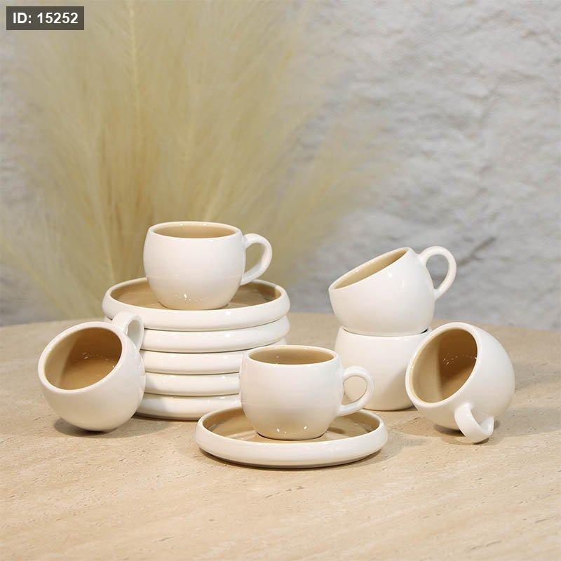 طقم فناجين قهوة 6/6 بورسلان ابيض كابتشينو صحن مدور A48/37 =ع4