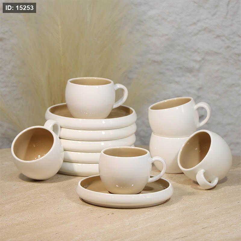 طقم فناجين شاي6/6 بورسلان ابيض بستاشيو صحن معلوج A48/38 =ع4