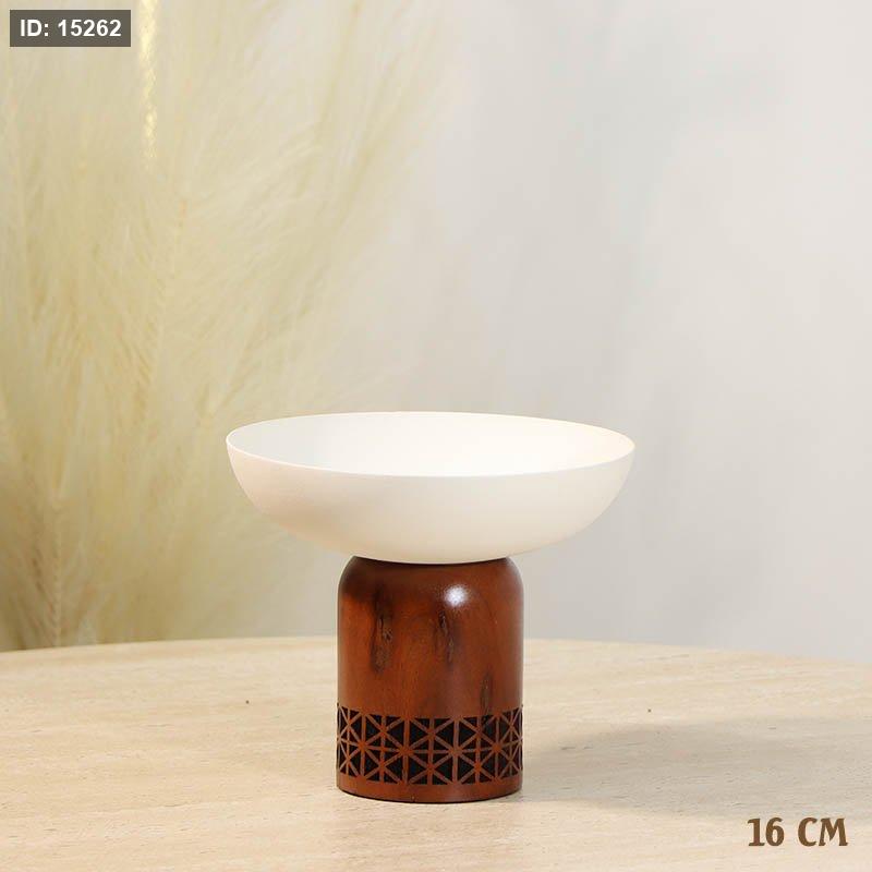 مضيفه مدور 16سم تنك بيج 72611-A رجل خشب محفر %ه13