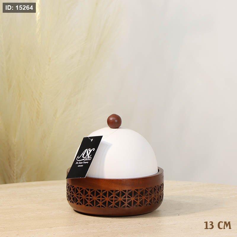 مضيفه 13سم خشب مدور محفر 3193غطا قبة تنك بيج %ه13