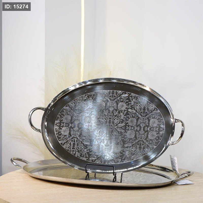 طقم صواني /2 بيضاوي 50*57 سم وجه مرسم ورد 72406/07 ستانلس فضي %ه13