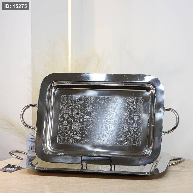 طقم صواني /2 بيضاوي 52*47 سم وجه مرسم ورد 4039/43 ستانلس فضي %ه13