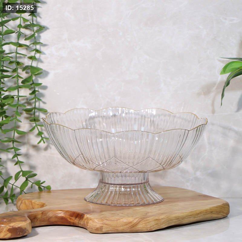 جاط فواكة اكرلك محزز مدور 25سم برجل حيف ذهبي وردة A213/18 =ع4