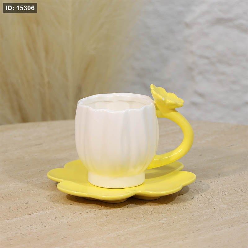 ماغ بورسلان ابيض يد وردة مع صحن اصفر ع.كرتون A221/7 =ع4