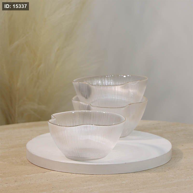 طقم /3 صحن مكسرات 12سم زجاج محزز حيف ذهبي معلوج A25/4 =ع4