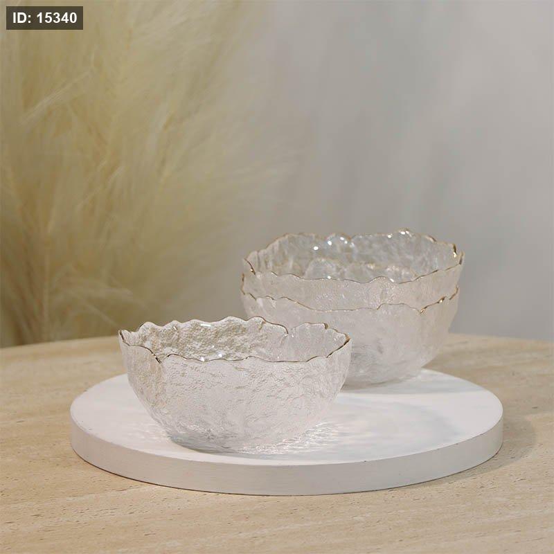طقم صحن مكسرات /3 زجاج مدور مثلج حيف ذهبي معلوج A25/10 =ع4