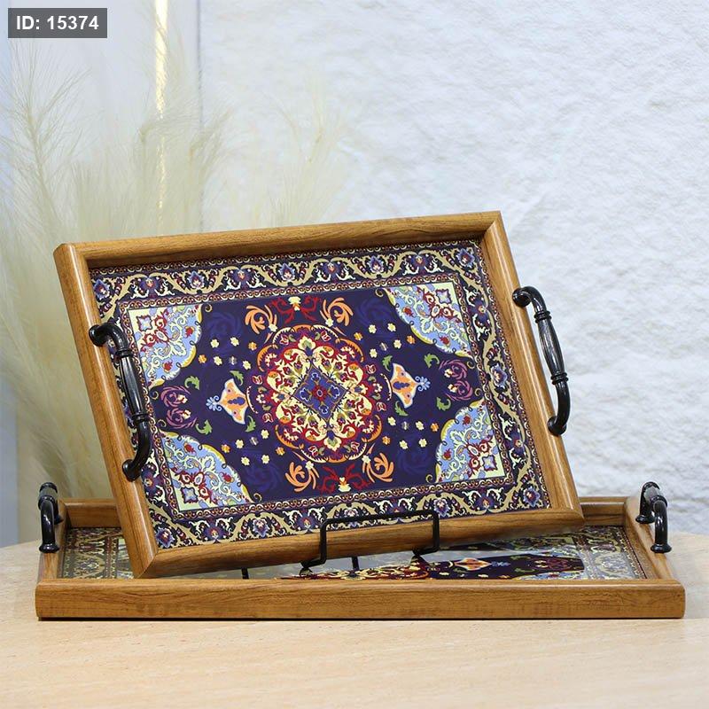 طقم صواني/2 بلاستك مستطيل احجام خشبي وجه مزخرف الوان غامقة A124/7 =ع5