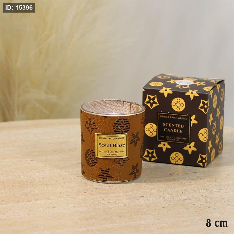 شمعة معطرة 8سم جلد بني LV اسطواني A67/24 =ع5