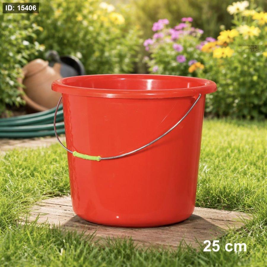 سطل دلو بلاستك احمر 25 سم مدور احمر يد حديد A213/23 EL167/10 =ع5