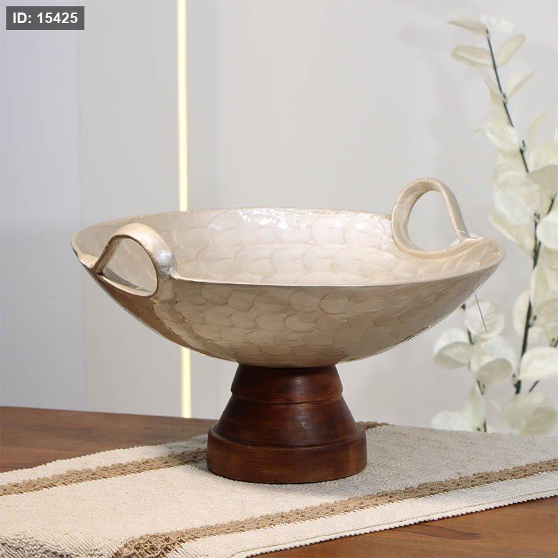 جاط فواكه تنك بيج بيدين 32سم مدور 89333 قاعده خشب بني B هندي %ه14