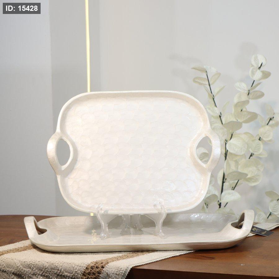 طقم /2 صينية تنك ابيض (30+25* 27+40)سم مسطتيل حيف هابط 88835 بيدين W هندي %ه14