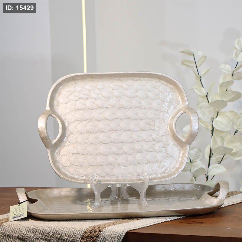 طقم /2 صينية تنك بيج (30+25* 27+40)سم مسطتيل حيف هابط 88835 بيدين B هندي %ه14