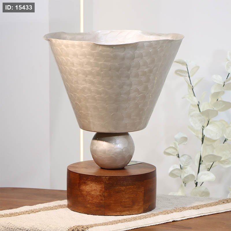 فازة تنك بيج 39سم شكل سهارة 89635L قاعده خشب بني B هندي %ه14