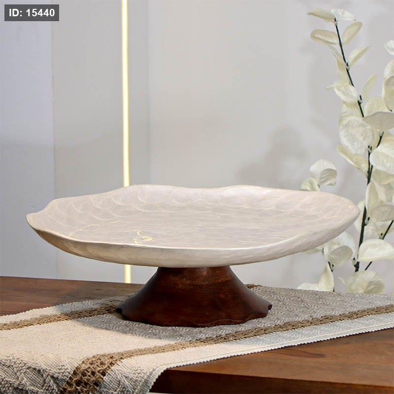 جاط فواكه تنك ابيض 36سم مدور حيف هابط 89647 قاعده خشب بني W هندي %ه14