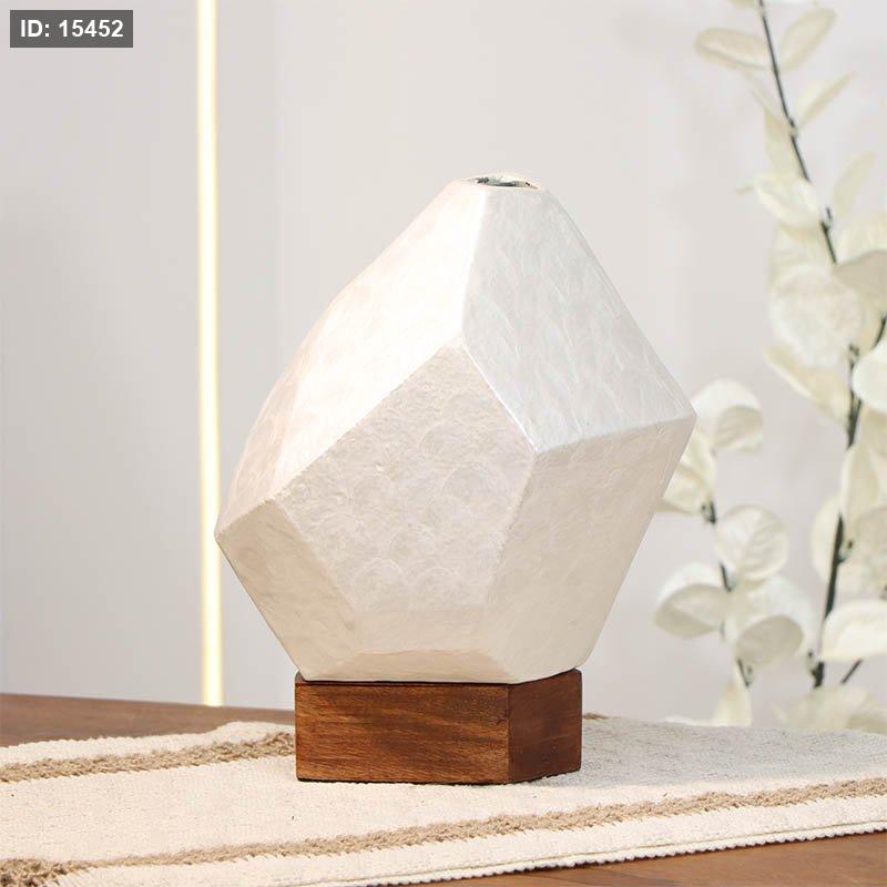 فازة تنك ابيض 24سم متعدد الاوجه 89949L قاعدة خشب بني W هندي %ه14