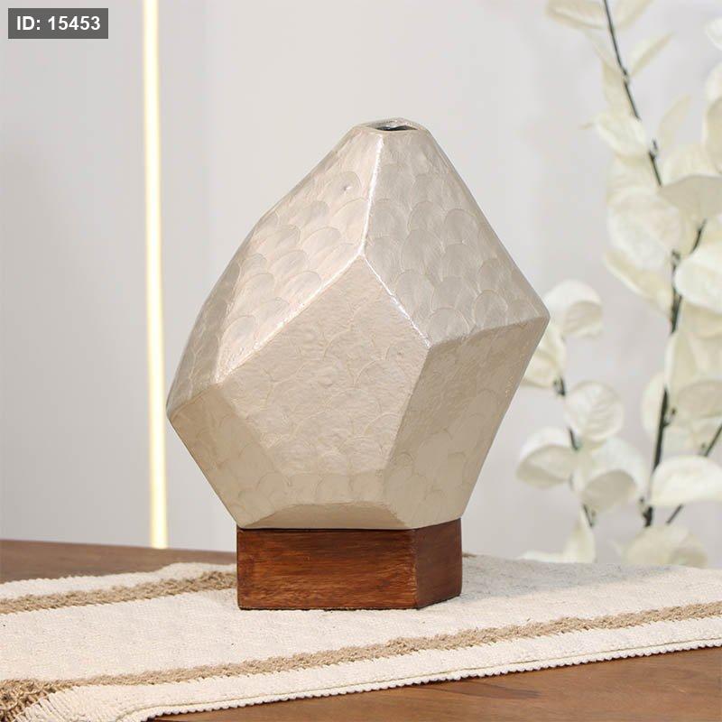 فازة تنك بيج 24سم متعدد الاوجه 89949L قاعدة خشب بني B هندي %ه14