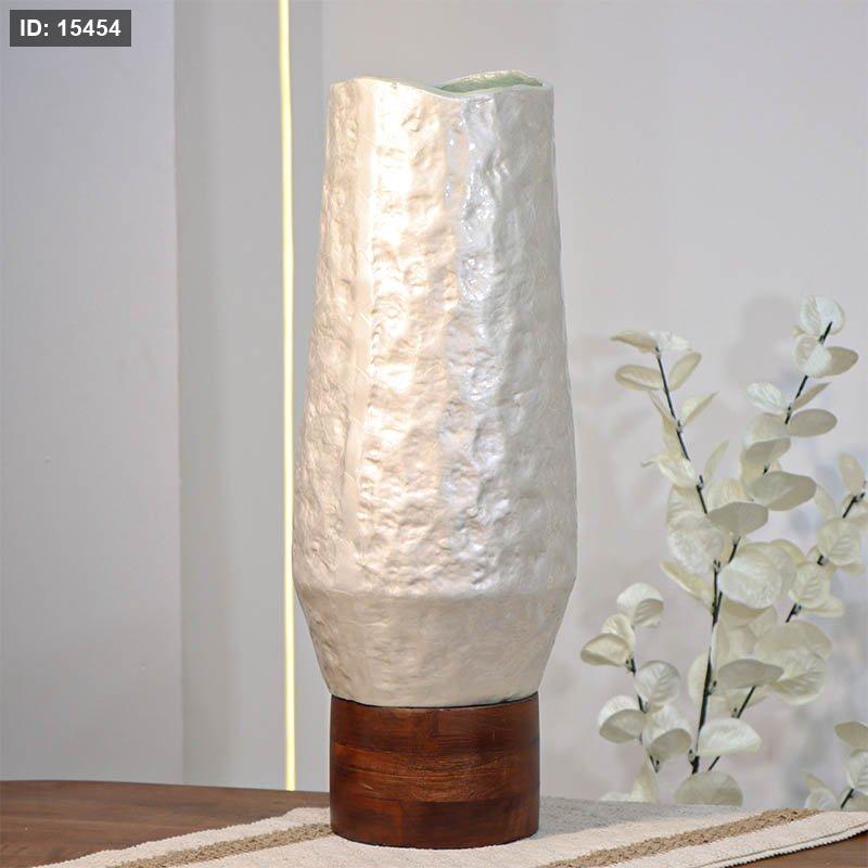 فازة تنك ابيض 48سم مزهريه اسطوانة 89950L قاعدة خشب بنيW هندي %ه14