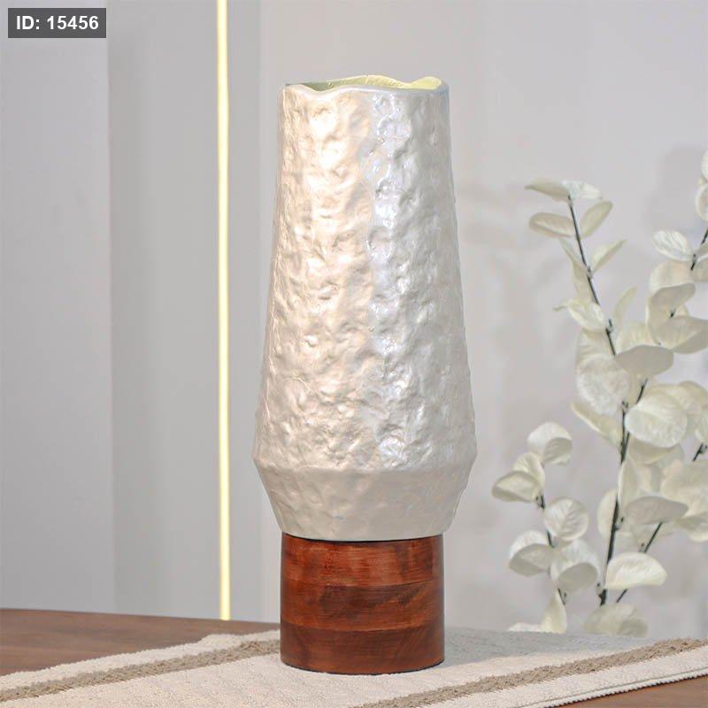 فازة تنك ابيض 39سم مزهريه اسطوانة 89950S قاعدة خشب بنيW هندي %ه14