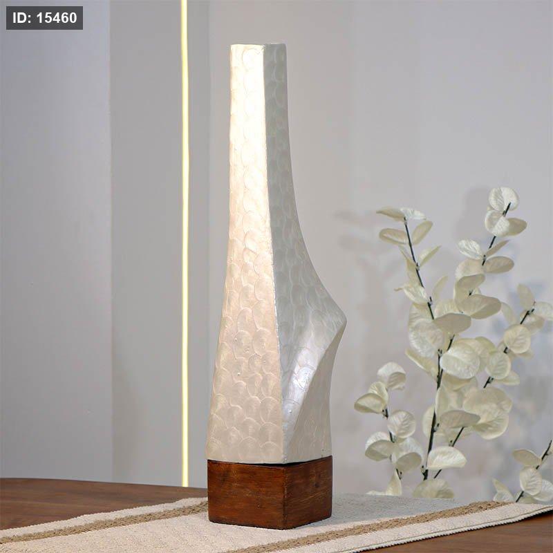 فازة تنك ابيض 49سم طويل 89953L قاعدة خشب بني W هندي %ه14