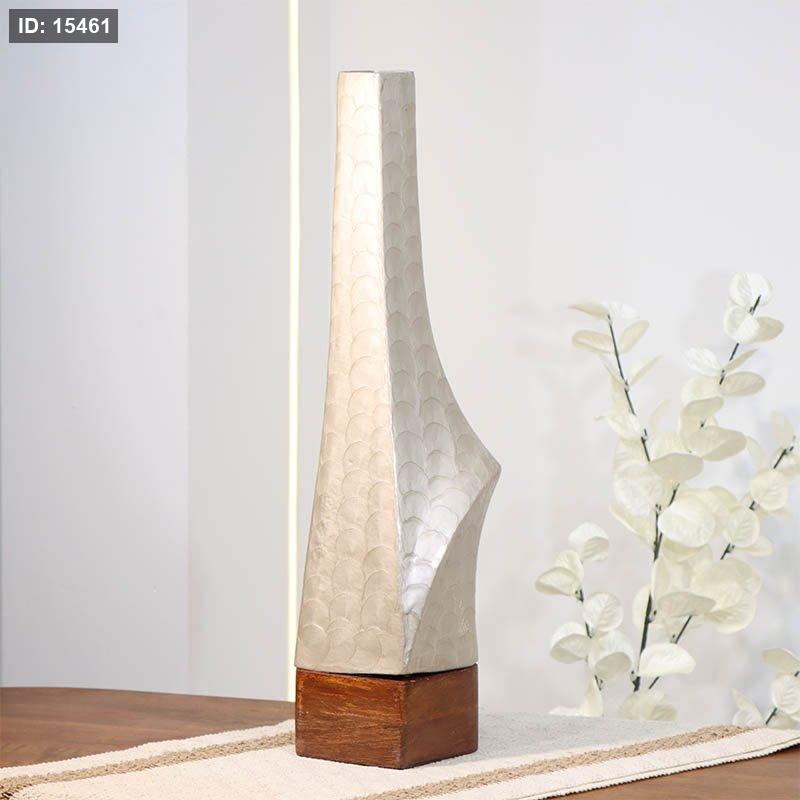 فازة تنك بيج 49سم طويل 89953L قاعدة خشب بني B هندي %ه14