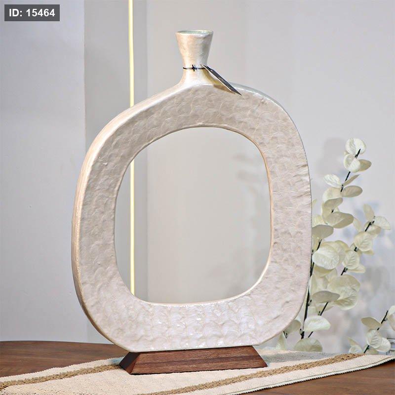 فازة تنك ابيض 50سم حلقه بعنق 89954M قاعده خشب بني W هندي %ه14