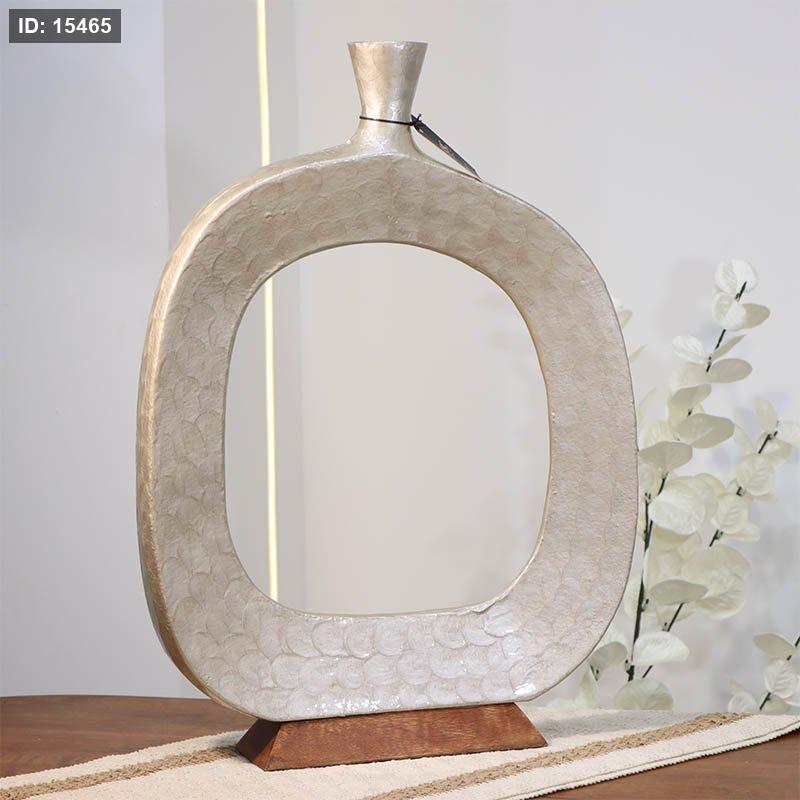 فازة تنك بيج 50سم حلقه بعنق 89954M قاعده خشب بني B هندي %ه14