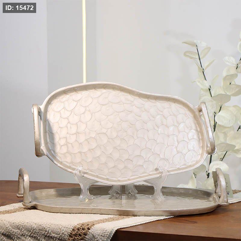 طقم /2 صينية تنك ابيض 43+40سم بيضاوي اطار معرج 89905LS بيدين W هندي %ه14