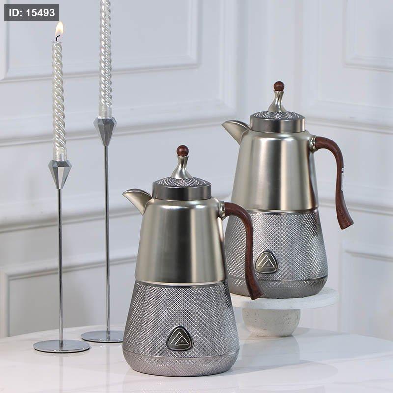 طقم /2 تيرموس قهوة + شاي بلاستك 1لتر فضي نصف بقلاوة سكني يد خشبي 450445 لالوزا ++ع5