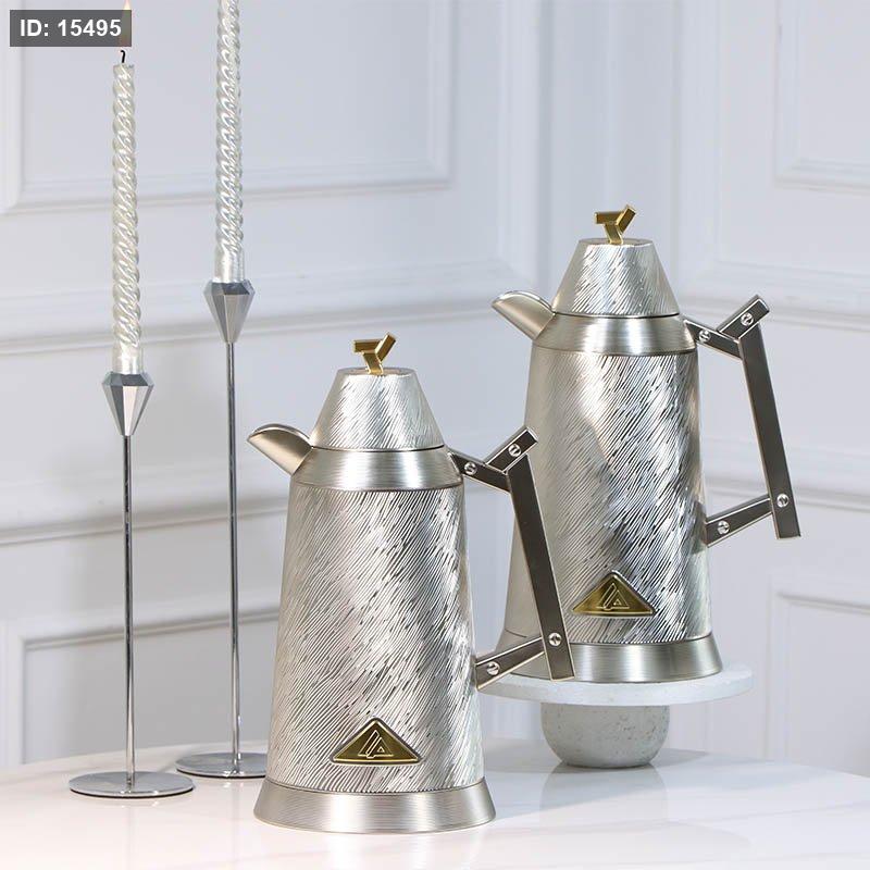 طقم /2 تيرموس قهوة + شاي بلاستك 1لتر فضي موشح يد فضي 450457 لالوزا ++ع5