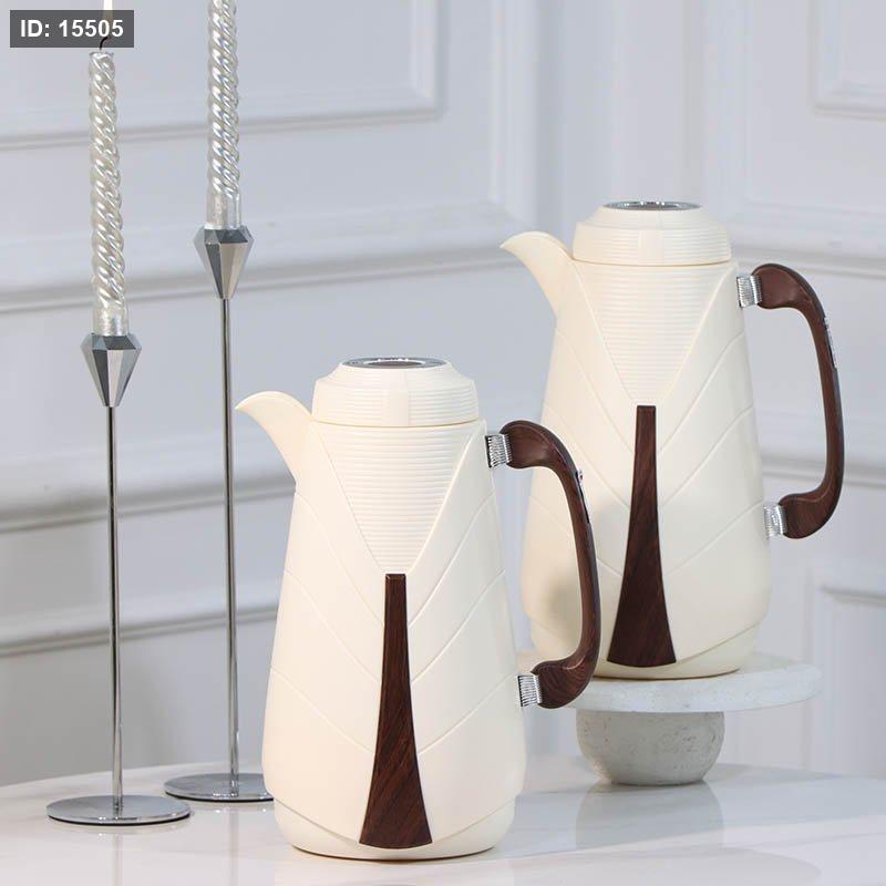 طقم /2 تيرموس قهوة + شاي بلاستك 1لتر بيج نخله يد خشبي 450422 لالوزا ++ع5