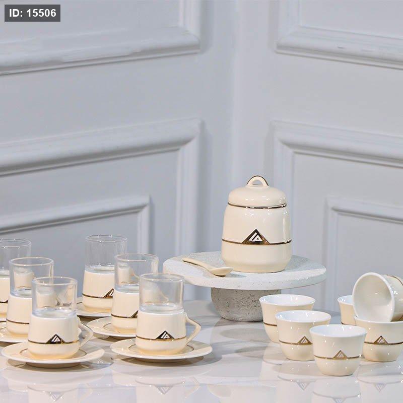 طقم /20 بورسلان بيج 6 فناجين قهوة سادة + 6/6 كاسة شاي + سكريه ومعلقه JY02-Beige لالوزا ++ع5