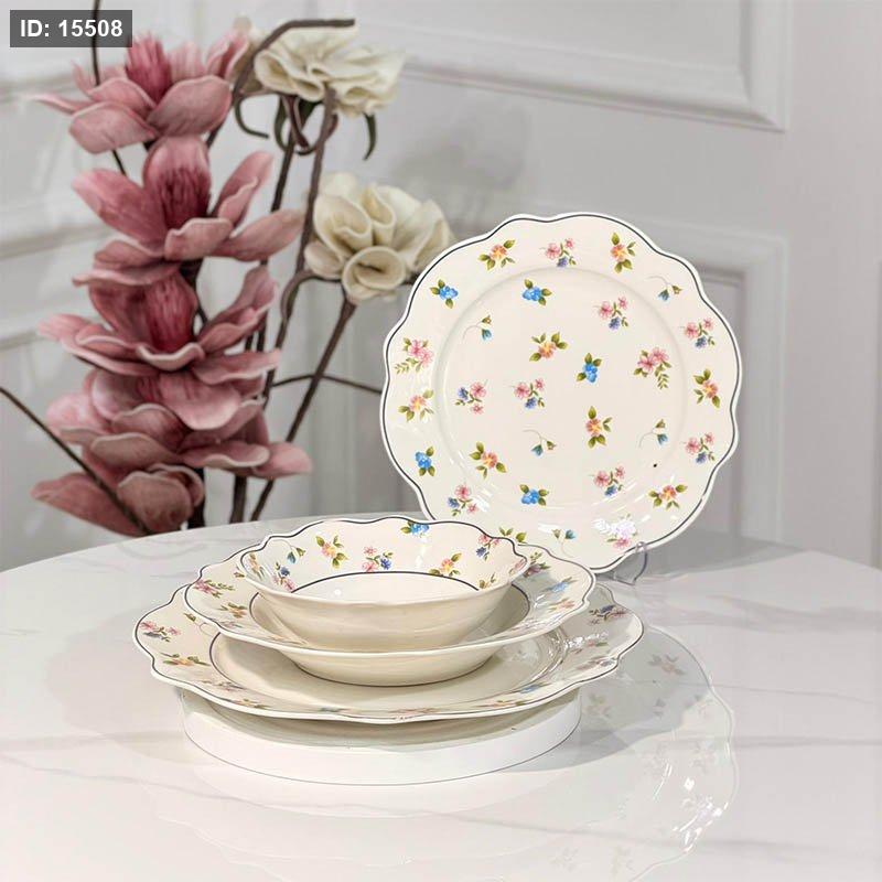 طقم صحون 24 قطعة بورسلان ابيض اطار مورد مشرف ملون JMD0563 ++ع6