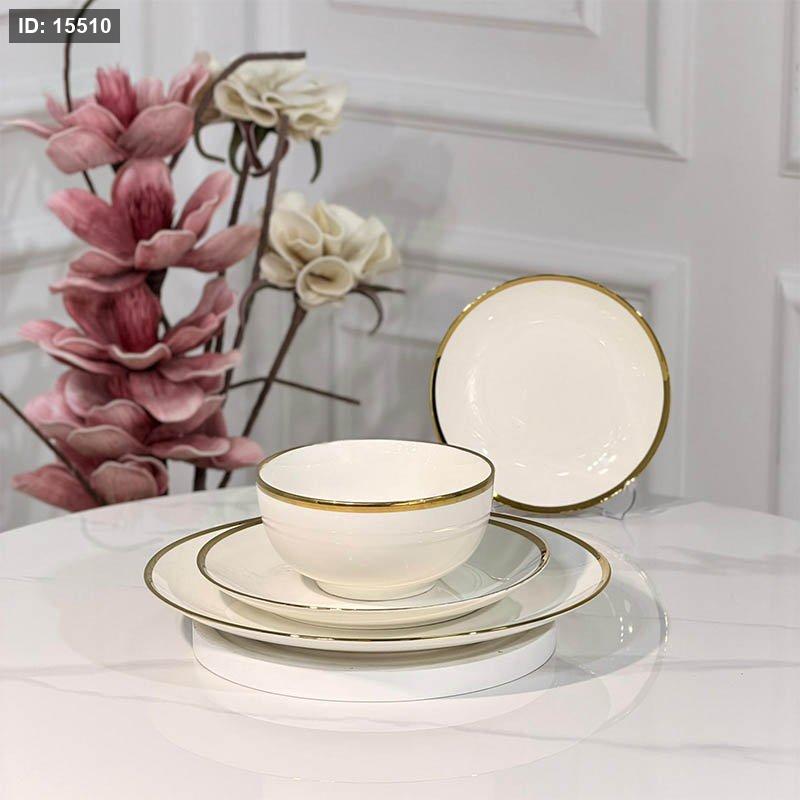 طقم صحون 24 قطعة بورسلان ابيض اطار ذهبي عريض JMD0565 ++ع6