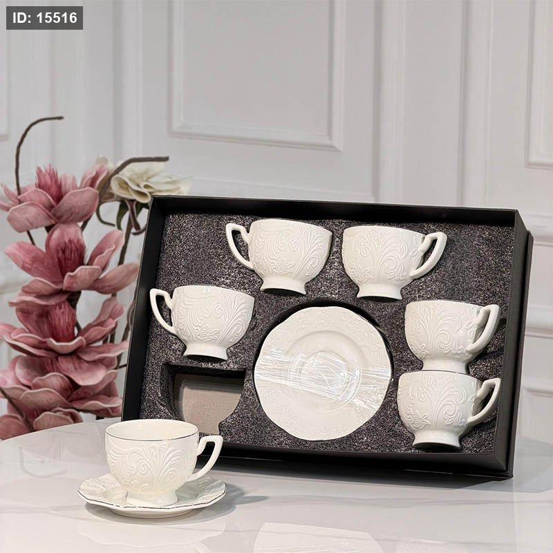طقم فناجين شاي 6/6 بورسلان ابيض مزخرف ورق JMD0572 ++ع6