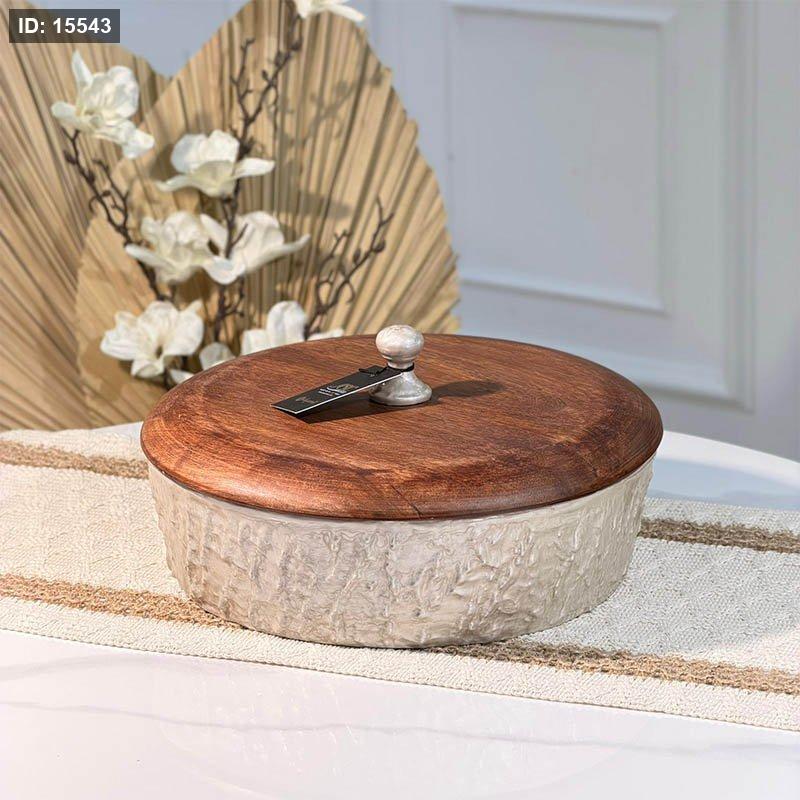 مضيفة مصدف بيج B مدور 27سم 89947L غطا خشب %ه15