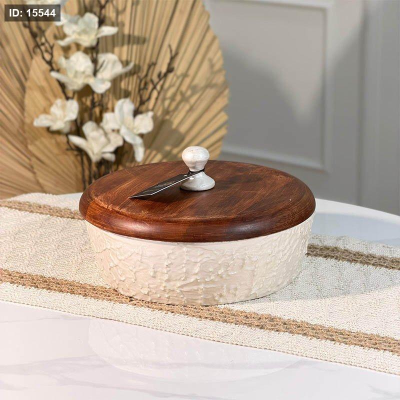 مضيفة مصدف ابيض W مدور 22سم 89947M غطا خشب %ه15