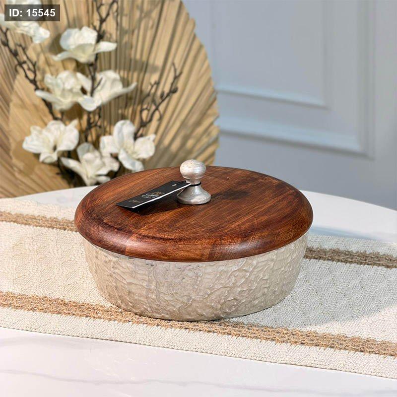 مضيفة مصدف بيج B مدور 22سم 89947M غطا خشب %ه15