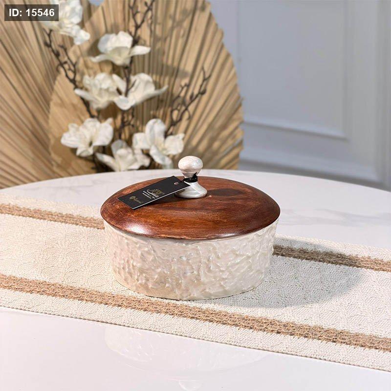مضيفة مصدف ابيض W مدور 17سم 89947S غطا خشب %ه15