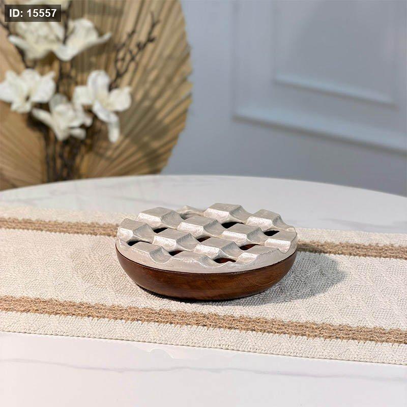 متكة خشب مدور 16سم 89955 غطا مصدف بيج Bهندي %ه15