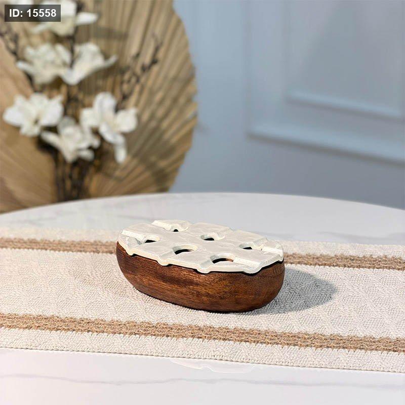 متكة خشب بيضاوي 16سم 89319 حيف مشرف غطا مصدف ابيض W هندي %ه15